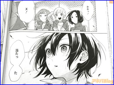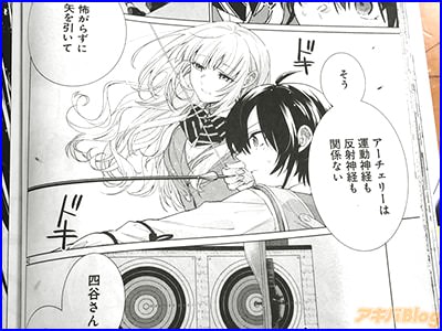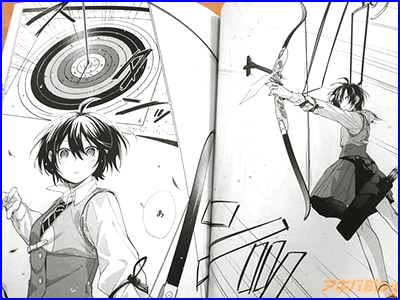 今回発売になった「ソラノヤ」1巻【AA】には第1話〜第5話と、巻末漫画&巻末4コマ、キャラクター紹介も収録(目次)し、裏表紙は『運動が苦手でもひたむきに楽しく!』で、オビ謳い文句は『その一射が未来を変える──。女子高生アーチェリー部青春譚!』になってた。