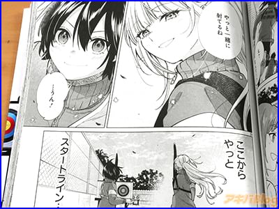 有馬ツカサ氏のアーチェリー漫画「ソラノヤ」1巻【AA】が15日に発売になった。オビ謳い文句は『その一射が未来を変える──』、裏表紙は『運動が苦手でもひたむきに楽しく!』で、作品情報は『真っ直ぐ飛ぶ矢の如く、アーチェリーにひたむきな女子高生たちの一射入魂青春譚!』になってる。