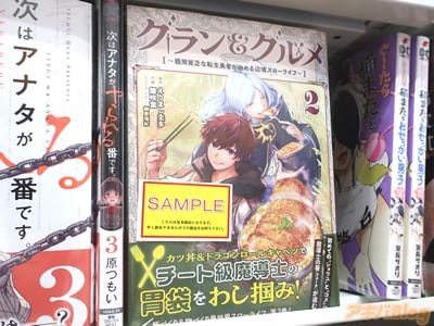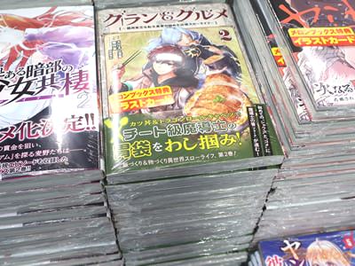 えりまし圭多氏の小説を雛咲葉氏がコミカライズされている「グラン&グルメ 〜器用貧乏な転生勇者が始める辺境スローライフ〜」2巻【AA】がアキバでは22日に発売になり、オビは『飯づくり&物づくり異世界スローライフ』、『カツ丼&ドラゴンロールキャベツでチート級魔導士の胃袋をわし掴み!』になってた。