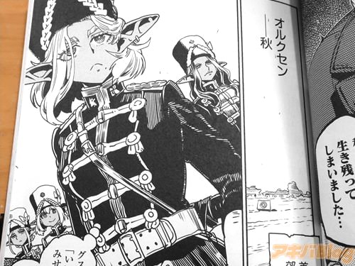 樽見京一郎氏の小説を、野上武志氏がコミカライズされている「オルクセン王国史」4巻【AA】がアキバでは23日に発売になり、COMIC ZIN秋葉原店で見かけた。コミックス情報 は『ついに復讐への道が見えはじめる――』で、裏表紙は『「白銀(ジルバーン)」、対エルフィンド侵攻作戦発動!』になってた。