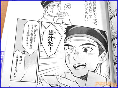 なお、「冒険者酒場の料理人」1巻【AA】の原作:黒留ハガネ氏はカバー折り返しで『コミカライズは1%の原作者と、99%の漫画家であるとアインシュタインは言った。残り100%は読者様』、漫画:飴井涼氏は『ヨイシみたいにストイックにがんばります!』などを書かれ、アンニュイ吉田さんの感想は『もう本当に沢山の人に読んでほしい作品なんです』などを書かれている。