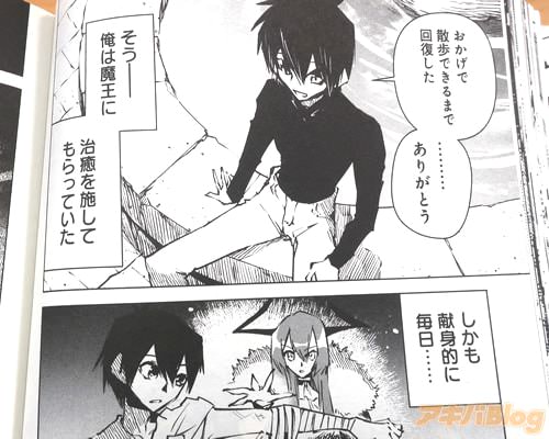 今回発売になったコミカライズ「魔王は勇者の可愛い嫁」1巻【AA】には第1話から第7話と、「おまけ漫画」を収録(もくじ)し、ダッシュエックス文庫編集部の発売告知は『仲間の裏切りから始まる、ジレ甘ざまぁファンタジー♥』などで、裏表紙が『裏切られ失意の勇者を救ったのはまさかの魔王!?』、オビ謳い文句は『生真面目勇者×クーデレ系魔王のじれったくて甘すぎる魔界ラブコメ!』、『裏切られた勇者を待っていたのは、可愛すぎる魔王との秘密のジレ甘ざまぁ生活!?』だった。