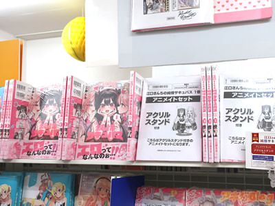 また、アキバでは販促POP『エロってなんなのぉ…!』や、ゲーマーズ本店のPOP『エロってなんなんだー!サキュバス×漫画家の2人が、「真」のエロを理解するためにあんなことやこんなことを!?ちょっとえっちでピュアな2人の同棲生活をのぞいてみませんか?』が付いていて、メロンブックス秋葉原1号店の階段下入口には「江口さんちの純情サキュバス」コーナーが出来ていた。
