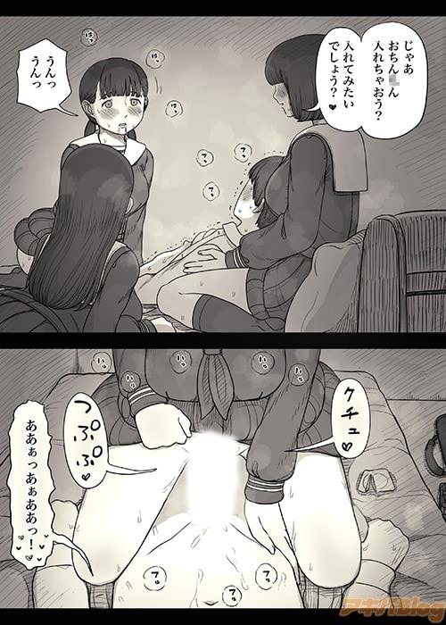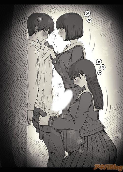 黒髪ロング美少女にフ◯ラをされたことで、つい全力の顔射をしてしまう男子くん。顔にぶっかけられた白濁汁を、もうひとりの女子が舐め取る光景に興奮必須。そのまますぐに騎◯位でハメられます。さらに、おかっぱ女子のマ◯コを舐めさせられて、上からも下からも女子の匂いムンムンな3Pがスタート!