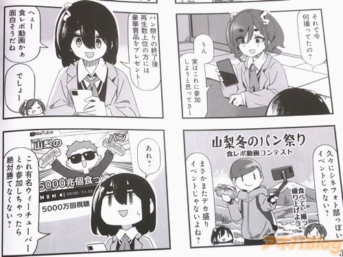 『mono』は、1巻発売時のコミックナタリーによると『写真部と映研が合併したシネフォト部の女子高生3人がいろいろな場所に出かけ、パノラマカメラや小型軽量アクションカムを使って撮影をするガールズコメディ』というお話(5巻の登場人物紹介)で、TVアニメも4月から放送中の作品。