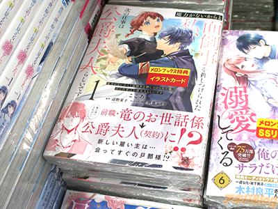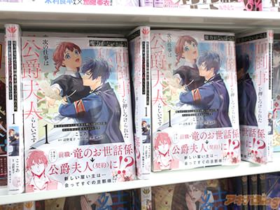 辺野夏子氏のライトノベルを、ここあ氏がコミカライズされている「魔力がないからと面倒事を押しつけられた私、次の仕事は公爵夫人らしいです」1巻【AA】がアキバでは15日に発売になり、オビ謳い文句は『前職・竜のお世話係→公爵夫人(契約)に!?新しい雇い主は…会ってすぐの旦那様!?』だった。