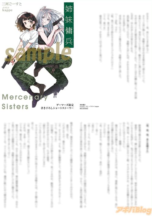三河ごーすと先生最新作「姉妹傭兵」は7月25日発売です!凛子と渚の活躍をお見逃しなく!