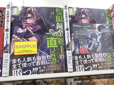 今回発売になったコミカライズ「隻眼錬金剣士のやり直し奇譚」1巻【AA】には、第1話から第5話を収録し、オビ謳い文句は『金も人脈も会社も、全て使ってお前に勝つ!』、裏表紙は『金も人脈も会社も、使えるものは全て使って最強へ登り詰める、ダンジョン無双ファンタジー!』だった。
