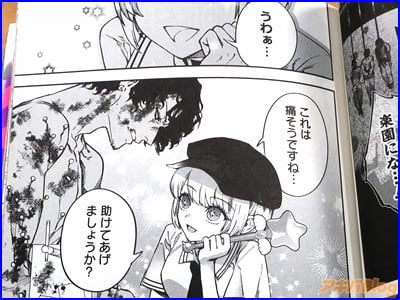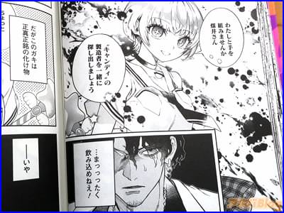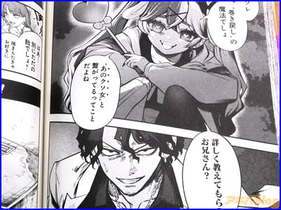 また、オビ謳い文句は『甘美な悪夢を根絶せよ』、『少年ジャンプ+連載の異色のクライムサスペンス!』で、コミックス情報は『暴力と魔法が交錯する異色のクライムサスペンス、第1巻!』になってる。