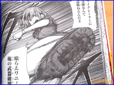 今回発売になったコミックス「マンティコア」3巻【AA】には第10話〜第14話を収録し、オビ謳い文句は『エリート商社マンの転落人生!?』、『殺人鬼との狂気の共生実験で被害者続出!』、裏表紙は『殺人鬼と脳内同棲、変態巨女警察官、人間解体屋』、『狂女続々参戦』などになってた。