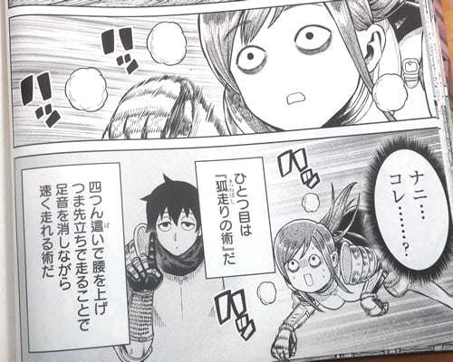 「(ひとつ目は“狐走りの術”だ。四つん這いで足音を消しながら速く走れる術だ)」