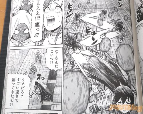 「な…なんだこいつ!?」 「すごい速さで登ってきたぞ!?」