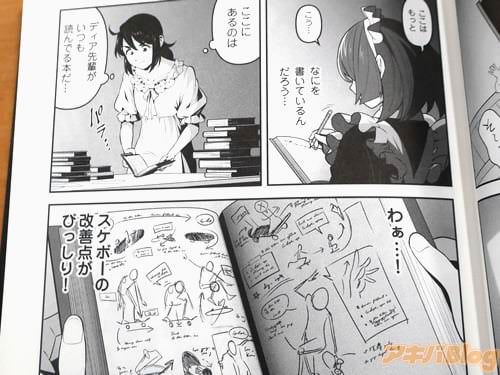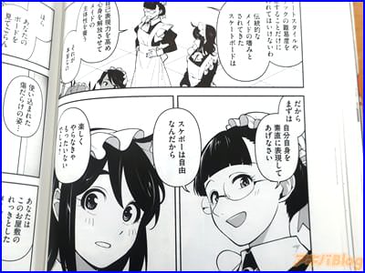 今回発売になったコミックス「メイドスケーター」2巻【AA】には、第6話から第15話とスケボー解説、発表会の個別評価、描き下ろし小話「マスターの過去」を収録(もくじ)し、裏表紙は『先輩メイドとスケボー特訓したり、技の開発をしたり…――とうとうお屋敷の主人が登場!?』で、オビ謳い文句が『「メイドの嗜み=スケボー」な世界の日常を描く、新感覚メイド漫画第2弾!』などだった。