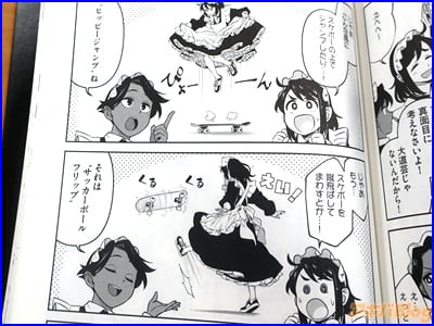 なお、コミックス情報は『スケボーはメイドを映す鏡です!?先輩メイドとスケボー特訓をしたり、同期のメイドと時にぶつかったり…、とうとうお屋敷のご主人様も登場!?ますますパワーアップしたメイドとスケボーが織りなす唯一無二の日常をお楽しみください。単行本だけでしか読めない描き下ろし漫画も収録!』、『スケボーを滑るメイドの日常漫画』などになってる。