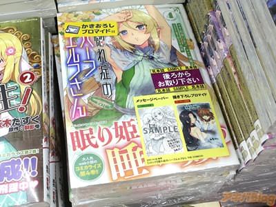 神尾丈治氏の小説を和泉リオン氏がコミカライズされている「惚れ症のハーフエルフさん THE COMIC」4巻【AA】がアキバではもう出てる。オビ謳い文句は『眠り姫を起こす方法は…睡眠◯!?』で、裏表紙は『バトルもハーレムもどんどん過激に♥』などになってた。