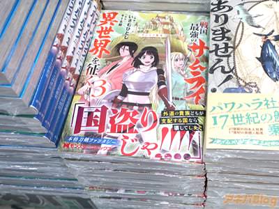 キー太郎氏のWEB小説をいさむひとし氏がコミカライズされている「サムライ無双〜戦国最強のサムライ、異世界を征く〜」3巻【AA】がアキバではもう出ていて、オビは『外道の貴族どもが支配する国なら壊してしまえ』、裏表紙は『腐った貴族らをぶっ潰すためロクローは「国盗りじゃ」と腹を決める』になってた。
