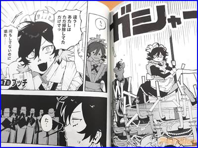 今回発売になった「DOG MATIC」1巻【AA】には、第1話から第7話と、キャラクターのデザイン案や4コマ漫画を収録し(もくじ)、裏表紙は『我儘×獰猛なバチカワ主人公!』、オビ謳い文句は『獣人世界の反逆ビーストファンタジー』だった。