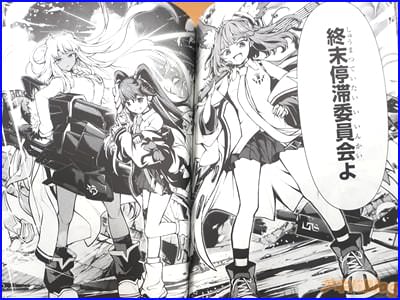 今回発売になったコミカライズ「こちら、終末停滞委員会。」1巻【AA】には第1話〜第4話と、原作:逢縁奇演氏の書き下ろし小説「パジャマパーティ in 恋兎寮」を収録(もくじ)し、オビ謳い文句は『終わってるこの世界で青春、してみない?』、『絶望の先で出会った少女たちと過ごす、眩しくて騒がしい学園生活!』で、コミックス情報は『デカい銃をぶっ放してセカイを護る。それが俺らの学園生活だ』、『SF、恋愛、バトル…、楽しさ全部盛りのSF×青春スペクタクル、待望のコミックス第1巻!』などになってる。