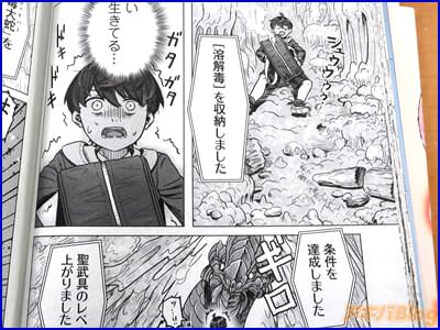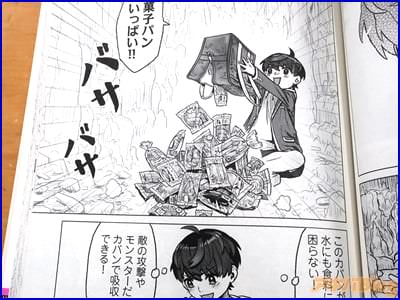 今回発売になったコミカライズ「カバンの勇者の異世界のんびり旅」1巻【AA】には第1話〜第5話を収録し、裏表紙は『最強の友(!?)と死のダンジョンを攻略!追放勇者の無敵の大逆転劇――はじまる!』で、オビ謳い文句は『“カバン”1つで気ままに異世界無双!?』、『ハズレ武器でとんでも大冒険!』だった。