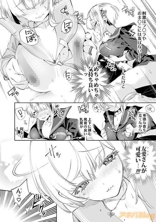 コスプレ回。いつもと違うセーラー服を身につけた二人が、それぞれHを愉しみます。フレアちゃんは黒セーラー服を着たまま、ノーブラ上着にチ◯ポを滑り込ませてデカパイで挟んでシゴく着衣パイ◯リ。服の生地越しに乳首残像を見せる透過ショットが素晴らしい!“おっぱいに包まれる”と“セーラー服に包まれる”のダブル興奮でドチャシコです。