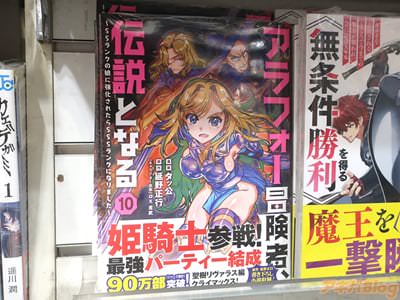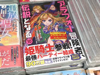 延野正行氏の小説をタッ公氏がコミカライズされている「アラフォー冒険者、伝説となる」10巻【AA】がアキバではもう出てる。コミックス情報は『たどり着いた場所で出会うのは…盲目の美人女剣士!?』、オビが『聖樹リヴァラス編クライマックス!』で、裏表紙は『おっさん、美女から大人気♥』などだった。