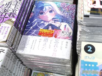 中村猫氏の小説を、乾しろ氏がコミカライズされている「侯爵家の次女は姿を隠す」1巻【AA】がアキバではもう出てる。コミックス情報は『ある朝、侯爵家の次女・セレスティーナは忽然と姿を消した――』で、オビは『家族に忘れられた少女が運命を紡ぎ直す物語』だった。