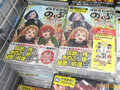 蝉川夏哉氏の小説をヴァージニア二等兵氏がコミカライズされている「異世界居酒屋“のぶ”」21巻【AA】がアキバでは2日に発売になった。コミックス情報は『古都を訪れた食通の貴族が「のぶ」の料理を口にして―?』、オビ謳い文句は『伝説に残るきのこを使った秘密の料理とは?』だった。
