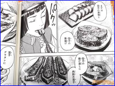 今回発売になったコミカライズ「異世界居酒屋“のぶ”」21巻【AA】には、第127話から第131話の「居酒屋接待の一日」、「森のきのこと温故知新」、「【閑話】幼夫婦の優雅な日々」、「双根の大樹」、「秋茄子と旧い神」のエピソードを収録し(もくじ)、コミックス情報は『古都を訪れた食通の貴族が「のぶ」の料理を口にして――?』になっていて、オビ謳い文句は『伝説に残るきのこを使った秘密の料理とは――?』だった。