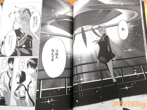 今回発売になったコミックス「放課後のルミナス」1巻【AA】には第1話から第5話とキャラクター紹介を収録し、コミックス情報が『地球人と異星人、両方を巻き込むSFラブストーリーここに開幕!』、コミックグロウルの告知は『転校生は婚約者で、そして宇宙人だった――!月が大好きな高校生と、地球人と友達になりたい宇宙人』で、オビ謳い文句は『地球人の存亡をかけたSFラブストーリー!』、『宇宙人(この娘)と子供を作ったら、地球人が絶滅する――』だった。