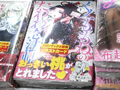 今回発売になったコミックス「一撃必殺!くノ一ももねのたわわ忍法帖」1巻【AA】には第1話〜第6話を収録し、ヤングコミック編集部の告知は『大柄で童貞のヤマトの前に華麗に舞い降りるは…くノ一探偵!?たわわと桃尻に責め立てられて事件どころじゃありません!』で、オビ謳い文句が『おっきい桃がとれました♥』、裏表紙は『夜の帷が下りたとき華麗に舞うは、げに美しき桃尻娘のたわわくノ一!』、『かぐわしい桃の香りいっぱいのラブコメ第1巻!』、『くノ一七変化♥』になってた。