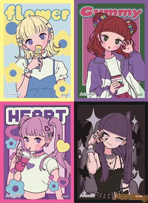 人気クリエイター様のイラストを使用するカジュアルなデザインのスリーブシリーズ「Arteveloカードスリーブ」。今回はポップな色遣いがキュートな「わき」様のイラストを使用した4種類が登場いたしました。お菓子のパッケージのような魅力が詰まったデザインです!