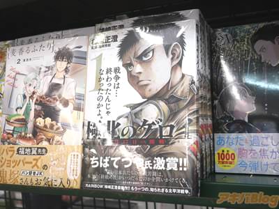 今回発売になったコミックス「極北のゲロイ」1巻【AA】には、第1話「終戦」〜第4話「遅春」を収録(もくじ)し、表紙は『戦争は…終わったんじゃなかったのかよ』、オビ謳い文句は『「RAINBOW」柿崎正澄・最新作!もう一つの、知られざる太平洋戦争』などで、コミックス情報は『千島列島の北東端、占守島を舞台に描かれる戦争ドラマ巨編』になってる。