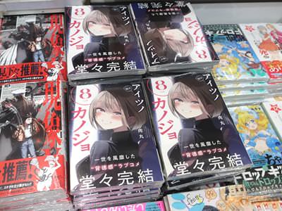 今回発売になったコミックス「アイツノカノジョ」8巻【AA】には第65話〜最終第73話と、描きおろし漫画「あの日のこと」を収録(もくじ)し、裏表紙は『「サンデーうぇぶり」にて金字塔を打ち立てた。インモラル恋愛譚』で、オビ謳い文句は『一世を風靡した“背徳感”ラブコメ、堂々完結』だった。