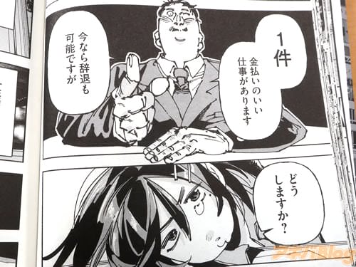なお、カバー折り返しで、原作:オノ・マサユキ氏は『たくさんの殺し屋を出し、たくさん戦ってもらうつもりです。楽しんでいただけますよう』、原作:阪元裕吾氏が『この物語は僕が実写ではなかなかできない描写をふんだんに描いた作品です。これから千晴はどうなっていくのか、今後もお楽しみに!』、あとがきで漫画:八貫徹世氏は『たくましかったり図太かったり年相応に悩んだり、喜んだり葛藤したり失敗したり学んだり、そんな千晴ちゃんと初連載を駆け抜けられたらと』などを書かれている。