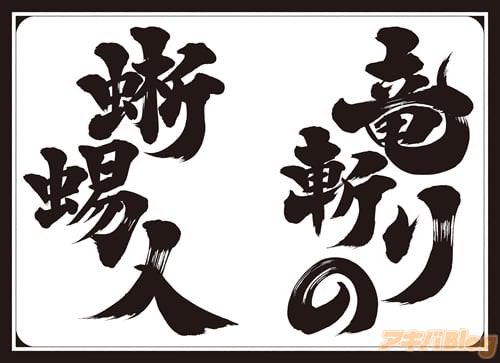 迫力満点の筆遣い……こちら様々な企業ロゴ、アニメやゲームのデザインでも活躍される書道家「蒼喬」先生によって書かれた、本作の題字――で、ございます(改まってしまった……)特に近年では、我々のようなオタク共なら「あ、この方か!」と気が付く人も多いんではないでしょうか?