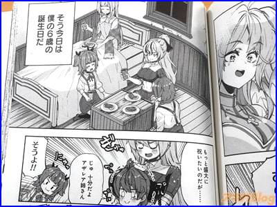 また、収録の第1話では、異世界の貧乏貴族・クレマチス家の三男(庶子):ヒスイ・ベルクーラ・クレマチスとして転生した主人公が、養子である3人の姉たちと共に家中で冷遇されていたり、食料を取りに入った森で宙に浮く女性に声を掛けられていて、オビ謳い文句は『姉にも女神にも愛でられすぎて困ってます…!』、『異世界スローライフ(?)な成長録!』になってた。