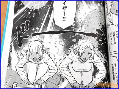 今回発売になったコミックス「邪神の孫 ダークエルフ姉妹と過ごす異世界引きこもり生活」1巻【AA】には第1話から第4話を収録し、折り込みチラシは『新時代の“異世界転生”コメディ!』、『日本文化(?)に触れるダークエルフ姉妹、愛しさ10000%』、裏表紙は『はじめての料理、はじめての入浴、はじめての身体測定。ダークエルフの姉妹とのまったり同棲、始まります』などだった。
