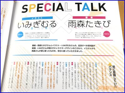 描き下ろし×特殊加工のスペシャルカバー。1〜8巻までの文庫ビジュアルを網羅。コラボビジュアル&落書きイラストなどを多数収録。キャラクター設定画で、初期デザインが明らかに。未使用ラフ、没ラフなどを厳選して掲載。いみぎむるのイラストコメント入り。ウラ話盛りだくさん!?雨森たきび×いみぎむる、初対談が実現。