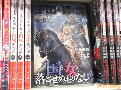 湯水快氏の小説を、伊藤寿規氏がコミカライズされ、カドコミ内・COMIC Huで連載中の「王国へ続く道 奴隷剣士の成り上がり英雄譚」19巻【AA】(キャラクター原案:日陰影次氏)が、アキバでは2日に発売になった(公式発売日は4日)。