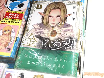 今回発売になったコミックス「金のなる森」1巻【AA】には第1話から第4話と、「私立金森高校」を収録(もくじ)し、オビ謳い文句は『彼は人間として生まれ、エルフとして生きる』で、裏表紙は『人間に蹂躙されるエルフの森…彼らを救う者は…』などだった。