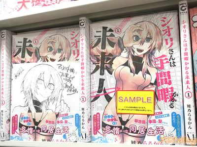 鮭乃らるかん氏がコミックキューンで連載されているコミックス「シオリさんは手間暇かかる未来人」1巻【AA】が、アキバではもう出てる(公式発売日は27日)。