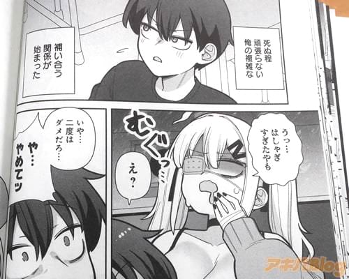 今回発売になったコミックス「俺がいないとすぐ××る儚木かすみ」1巻【AA】には第1話から第8話と、「おまけ漫画」を収録(もくじ)し、裏表紙は『ひよわすぎる地雷系JKとのちょっぴりエッチな青春ラブコメディ!』、『ひ弱な可愛さが、クセになる!』、『肌色多め♥ 番外編収録!』で、オビ謳い文句は『最弱の地雷系JKでっかく降臨♥』だった。