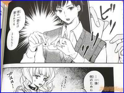 今回発売になったコミカライズ「六法推理」1巻【AA】には第1話から第6話と、書き下ろし「無法談義」を収録(もくじ)し、裏表紙は『理詰めの天才・古城と、閃きの天才・戸賀』、『正反対のコンビが贈る、痛快&新感覚のリーガル・ミステリー』、『血も涙もない“法律マシーン”×小悪魔的な“閃きの天才”』で、オビ謳い文句は『大人気青春ミステリーをコミカライズ』、『事件を解決するのは99%の法知識と、1%の閃き』などだった。