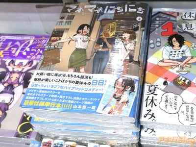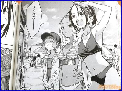 今回発売になったコミックス「マネマネにちにち」3巻【AA】には第38話〜第55話と、描き下ろしおまけ漫画「タイブレーク」を収録(もくじ)し、裏表紙が『毎日が楽しくって嬉しい高校1年生の夏休み』で、オビ謳い文句は『日常×ちょいラブ?なハイブリットコメディー!』、『お買い物に海水浴、もちろん部活も!毎日が楽しいことばかりの夏休みの日日!』になどになってた。