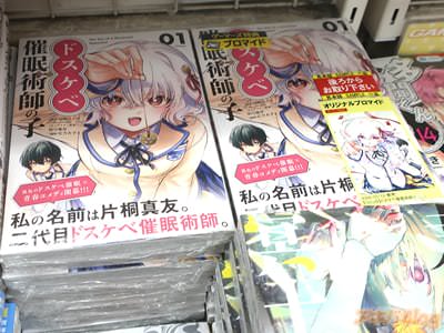 今回発売になったコミカライズ「ドスケベ催眠術師の子」1巻【AA】には第1話から第6話と、「キャラクターラフ画&設定」を収録(もくじ)し、裏表紙は『囁く!脱がす!揉みしだく!めくるめくドスケベ催眠スクールライフ!?』で、オビ謳い文句は『私のは名前は片桐真友。二代目ドスケベ催眠術師』、『異色のドスケベ催眠×青春コメディ開幕!』だった。