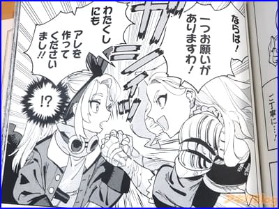 今回発売になったコミックス「冒険には、武器が必要だ!」4巻【AA】には第16話〜第20話と、モンスター紹介「襟巻蟷螂」・「吸髄蝙蝠」や、補足編「暑い日には、涼しい風が必要だ!」を収録(もくじ)し、オビ謳い文句が『最強の相手に、最高の武器を作れ!』、『迷宮(ダンジョン)の錬金術師編、クライマックス!そして、新章へ──』で、裏表紙は『新たな依頼主は、“パワー系お嬢様”と“追放した側のパーティー”』、『暴走する“怪物”を倒す三種の神器の使い方は…!?』、『武器鍛冶屋・ルディが作るロマン溢れる武器の数々!』などになってた。