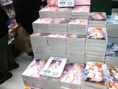 メロンブックス秋葉原1号店ではポスターをつけて平台展開していて、表紙イラストはmignon氏の下腹に淫紋の入った女の子で、表紙謳い文句は『淫らを刻んで』だった。