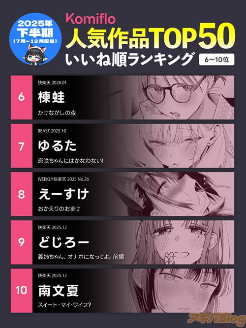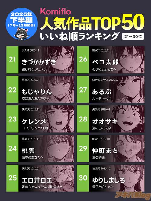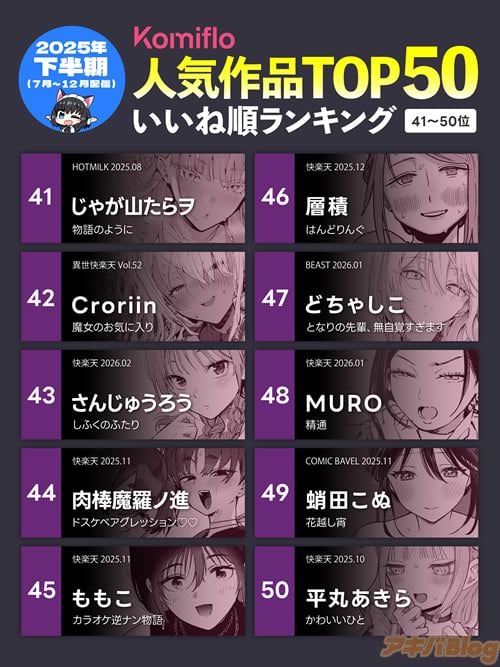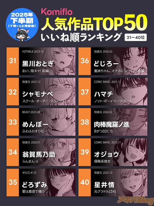 【コラム】エロ漫画読み放題Komifloで、2025年下半期の人気順を公開中!コミックバベルや快楽天の最新雑誌情報も!