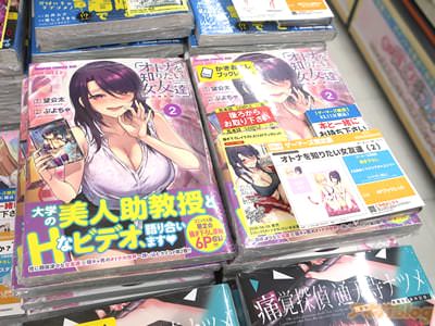 原作:望公太氏&作画:ぷよちゃ氏のコミックス「オトナを知りたい女友達」2巻【AA】がアキバでは7日に発売になった。裏表紙は『美人助教授と大人のギャル、どっちとHなビデオを見たい…?』で、オビは『性に興味津々な女友達×陰キャ男』、『大学の美人助教授とHなビデオ、語り合います♥』などだった。
