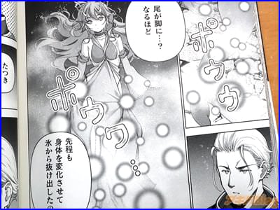 コミカライズ「魔王の始め方 THE COMIC」11巻【AA】には、第83話〜第91話と、巻末付録「マリー&オウルの人魚語講座」を収録(もくじ)し、裏表紙が『未知の大陸で遭遇する──謎の赤子、人魚の襲撃、だけどマリーちゃんは元気です!』、オビ謳い文句は『ダンジョン運営×魔王ダークファンタジー新章開幕!』、『魔王、新大陸でダンジョン開拓!』になってた。
